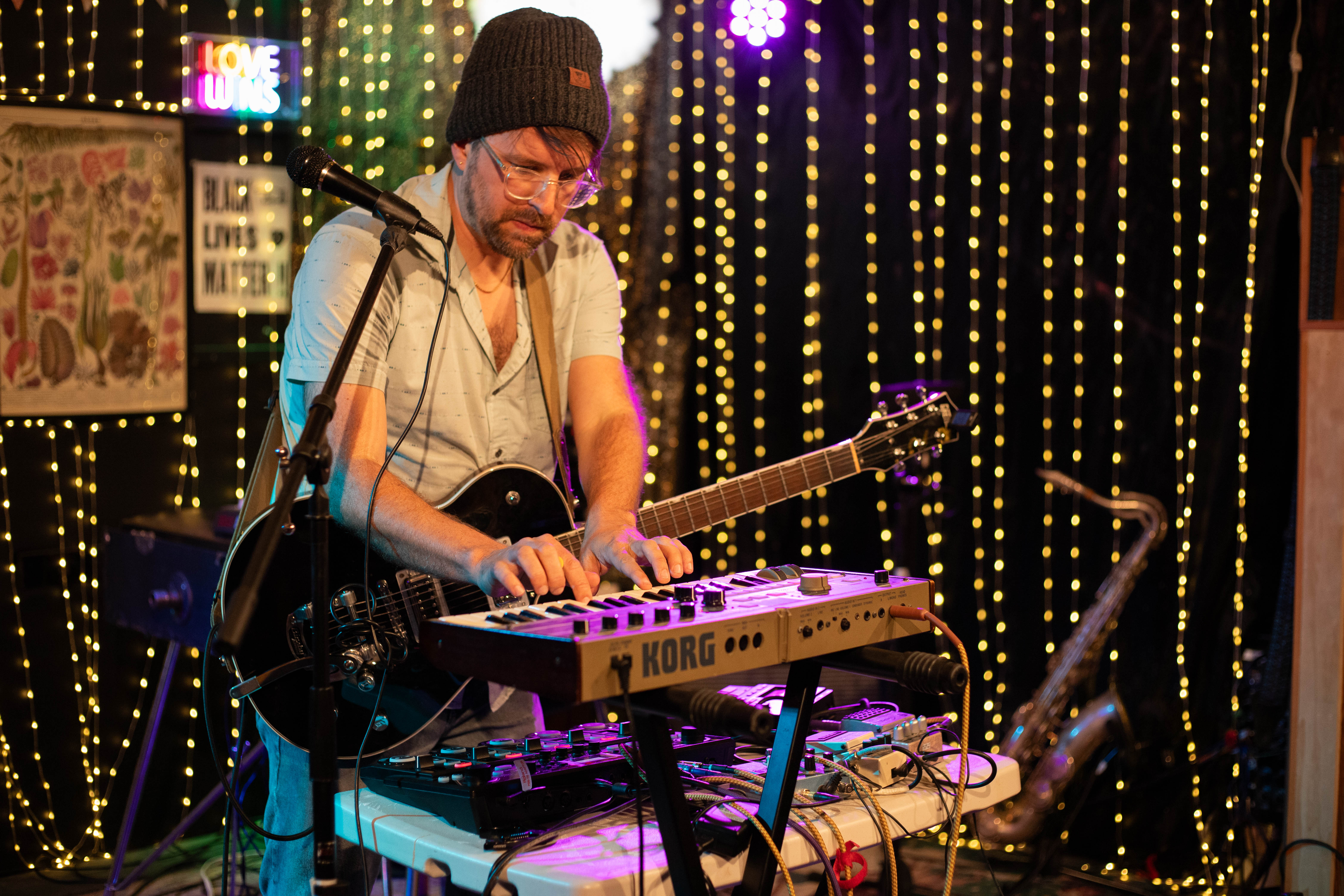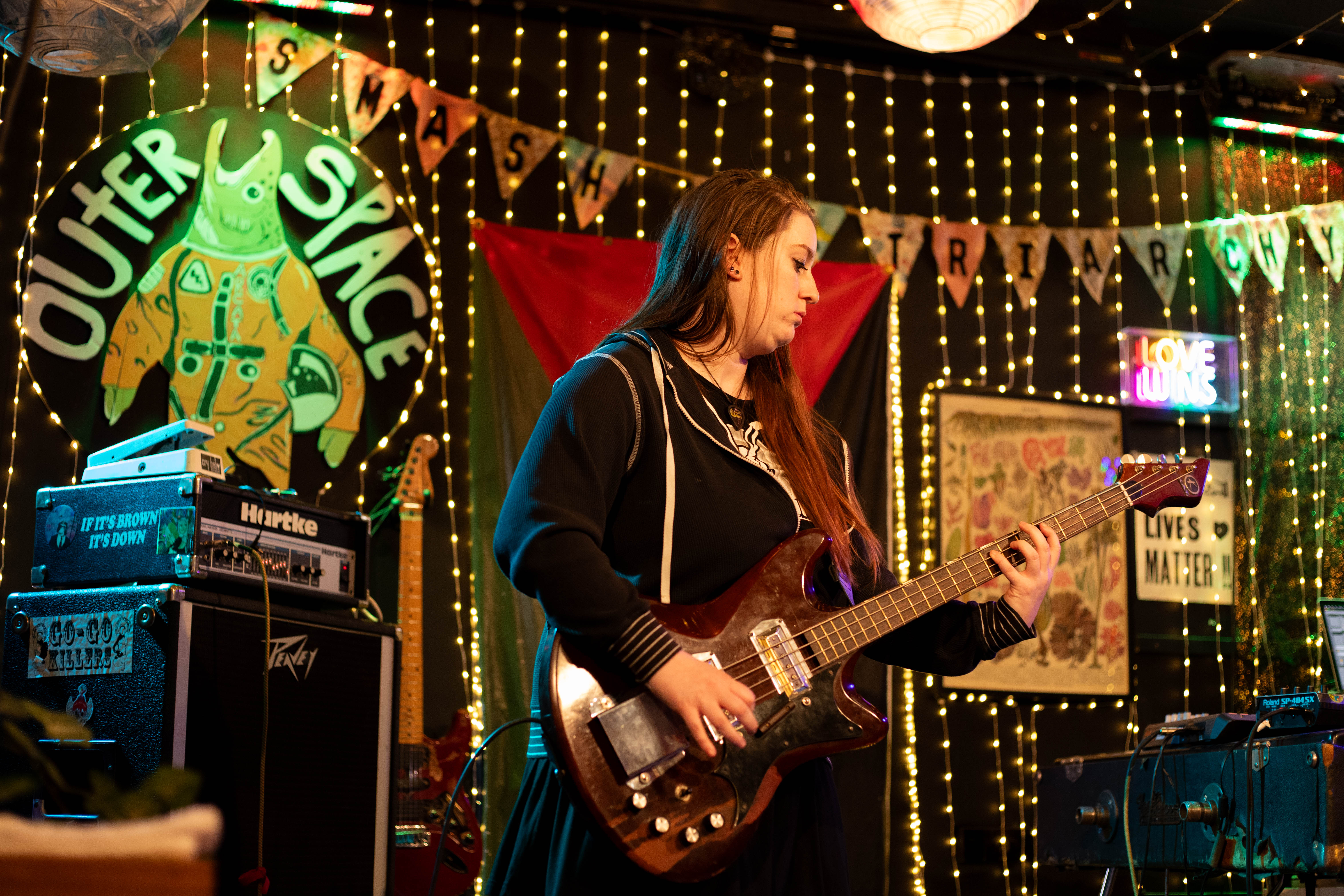 The theme for this night at Outer Space in Arcata seemed to be one or two people on stage backed by their loops, with each act increasing the complexity of those loops. The chaotic drone of KMRO, the mathy catchiness of Tsuga, and the galaxy traversing funk of Hermit Crab at the apex.